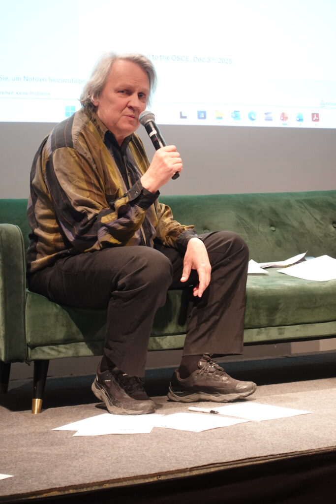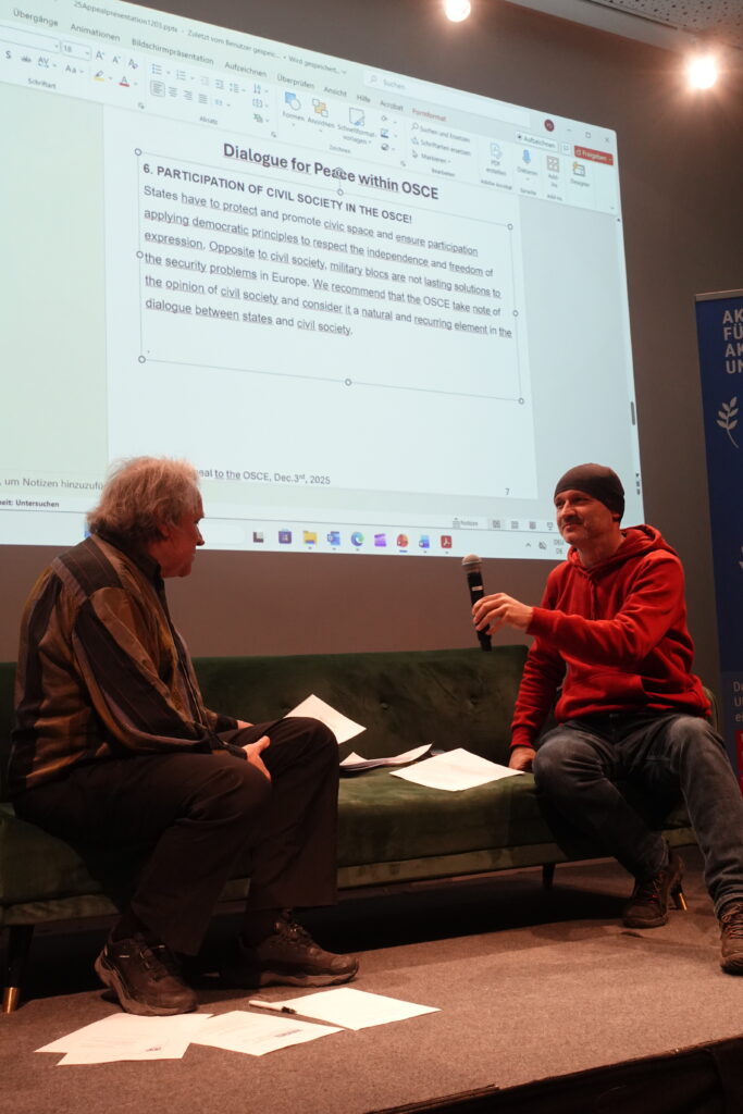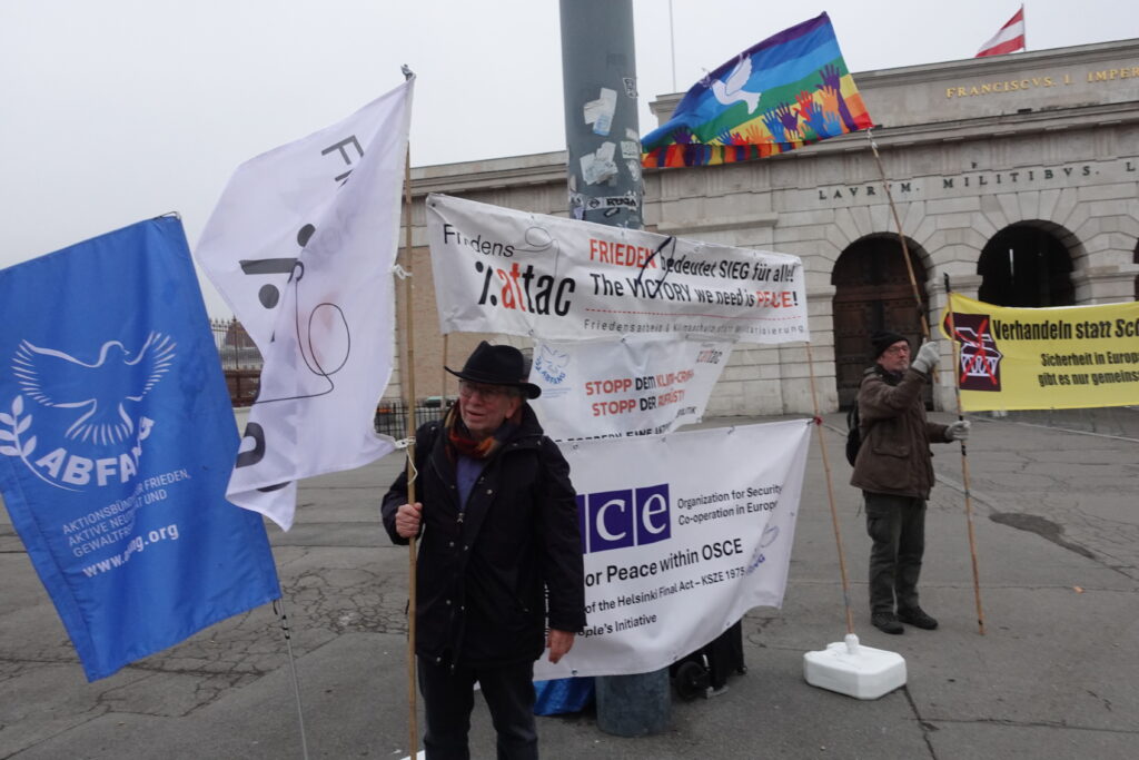 Wie bei solchen Events üblich, traf sich auch die Zivilgesellschaft aus vielen OSZE-Ländern zu diesem Jubiläum. Friedensgruppen vor allem aus dem europäischen Norden und dem ehemaligen Ostblock. Gastgeber:in war hier das österreichische Friedensbündnis AbFaNG.