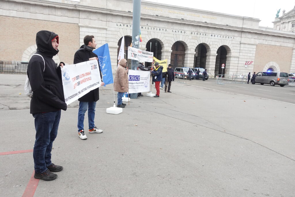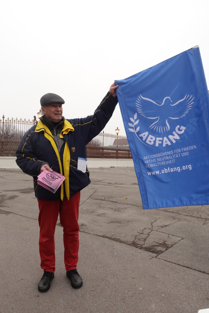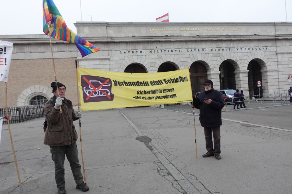 Die Deklaration ging noch in der Nacht an die Botschafter:innen aller 40 Länder. Und gestern früh stand dann eine kleine, feine Gruppe von (leider nur männlichen) Aktivisten (höheren Alters) vor dem Burgtor, um die Delegationen bei ihrer Einfahrt zu empfangen.